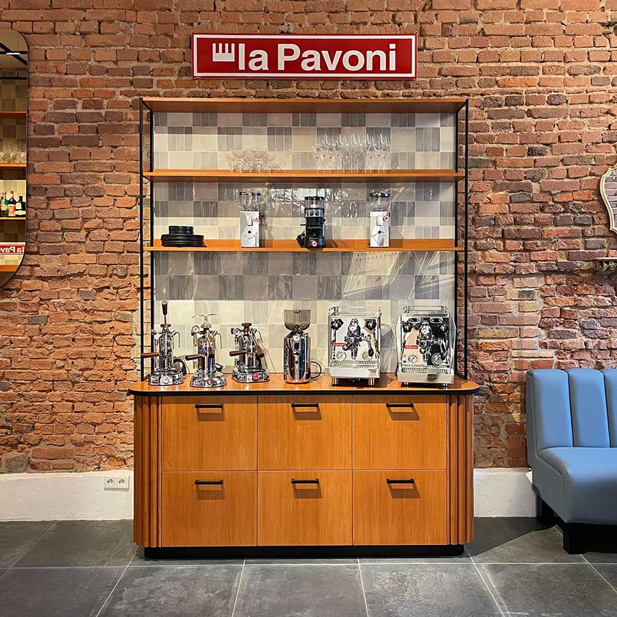 „La Pavoni ist eine der traditionsreichsten Marken, wenn es um die Herstellung hochwertiger Espresso-Siebträgermaschinen geht. Die Aufgabe bestand darin, in sehr kurzer Zeit, einen repräsentativen Showroom zu errichten, in dem nicht nur das gesamte Sortiment an Produkten ausgestellt wird, sondern die Espressomaschinen live vorgeführt werden können. In meinem la Pavoni Marketing-Team bestand zu dem Zeitpunkt keine internen Ressourcen, um das Projekt rechtzeitig zur Einweihung des Showrooms fertigzustellen. Darum habe ich das Projekt komplett an Cindy Böhm von Projektraum übertragen. In enger Abstimmung mit mir in der Funktion des Marketing-Leiters von la Pavoni übernahm Frau Böhm die Projektleitung, stimmte sich eigenständig mit den Designern und Schreinern ab und stellte sich mit großem Erfolg der Aufgabe, auf einer sehr kleinen Grundfläche und in einem eng gesteckten Budgetrahmen das Flair einer typischen norditalienischen Kaffeebar zu entwerfen und zu realisieren. Das Ergebnis hat alle Erwartungen übertroffen und ist auch nach 5 Jahren unverändert im Einsatz. Durch ihr hervorragend funktionierendes Netzwerk konnte vom Konzept, über die Planung, bis zur Umsetzung das Timing mit allen Abstimmungsrunden punktgenau eingehalten werden und so waren wir pünktlich zur Eröffnung des Showrooms in der Lage alle Gäste mit einem perfekt zubereiteten Espresso aus den la Pavoni Siebträgermaschinen zu begeistern.“